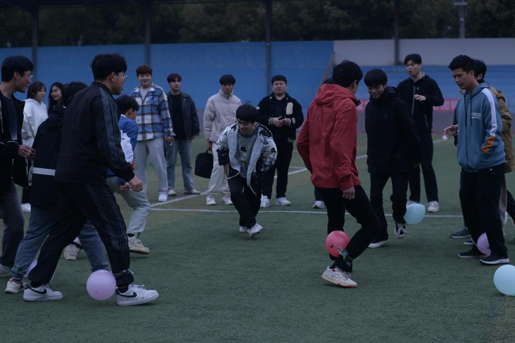 每组十人,每人在脚腕上绑3-4个气球,每约 互踩其他组气球,并保护自己的气球不被踩破。每场比 赛10分钟,比赛结束后,保留气球最多的组获胜。