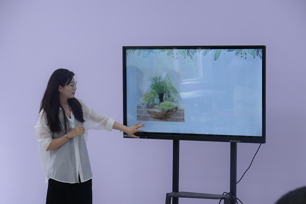 活动开始,心理健康中心的牟洁老师、张莉媛老师先为大家分别讲解了“花草瓶”和“微景观生态瓶”如何制作,并展示了一些优秀作品供老师们参考。