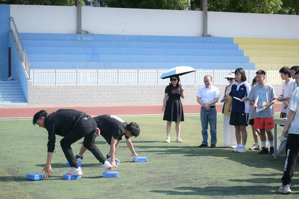 (3)活动规则:三人一组参赛队员站与起跑线后的第一二块石砖上手拿第三块向前出发,过程中不得踩到地面上,否则回到起点重新出发。