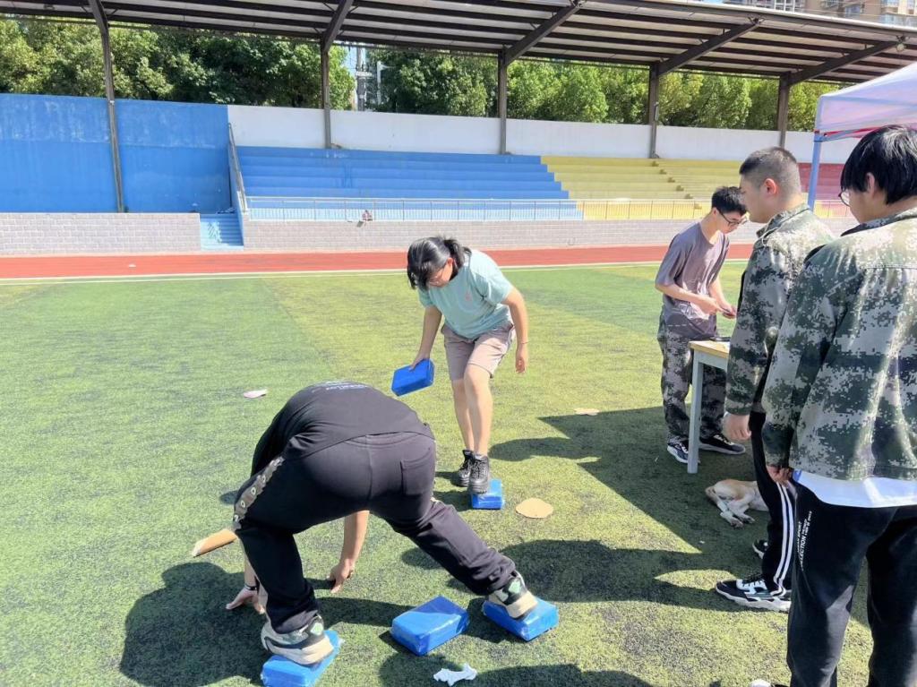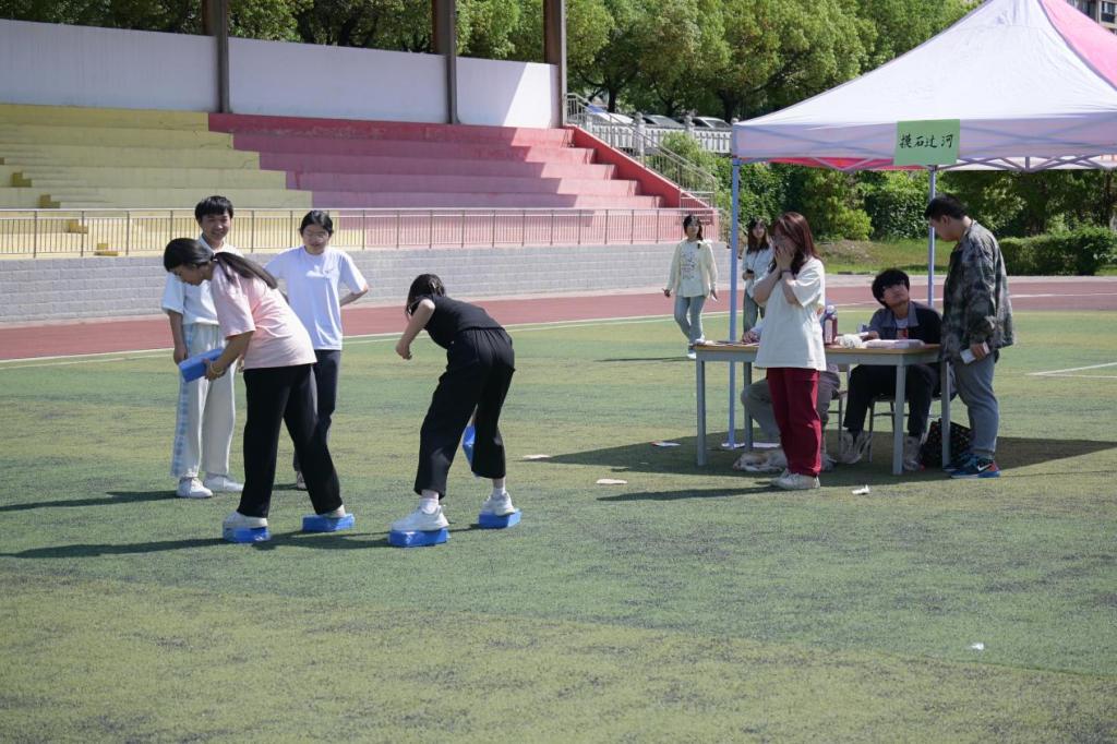 (1)活动内容:参与者三人一组用石砖走完全程