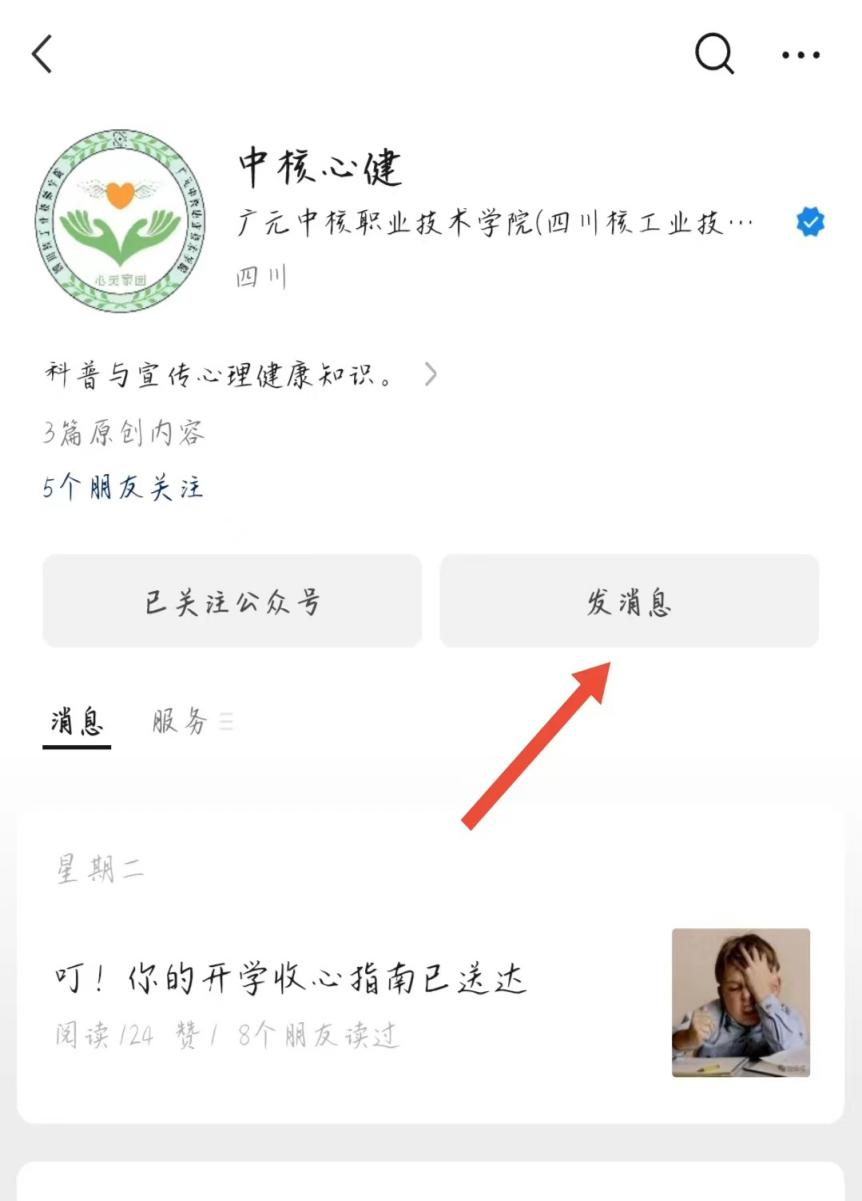 1.关注心理协会公众号“中核心健”。