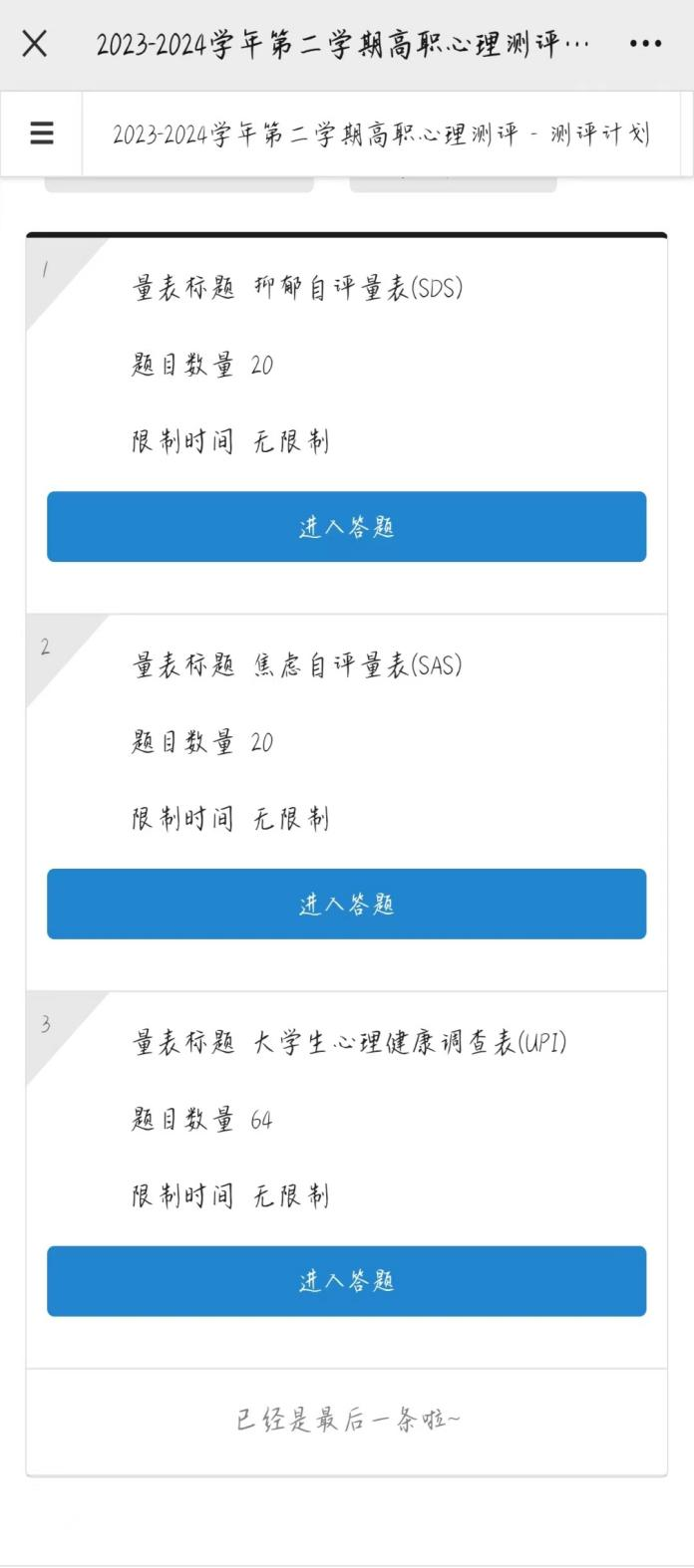 6.进入页面,有三套测评调问卷,点击“进入作答”即可。