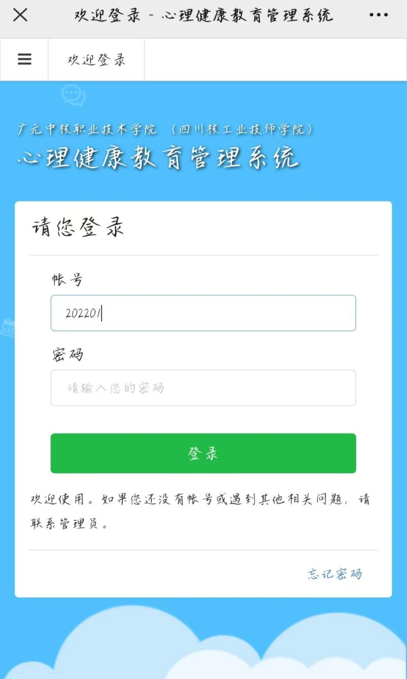 3.进入主页后,连接校园网络,点击“心理测评”。
